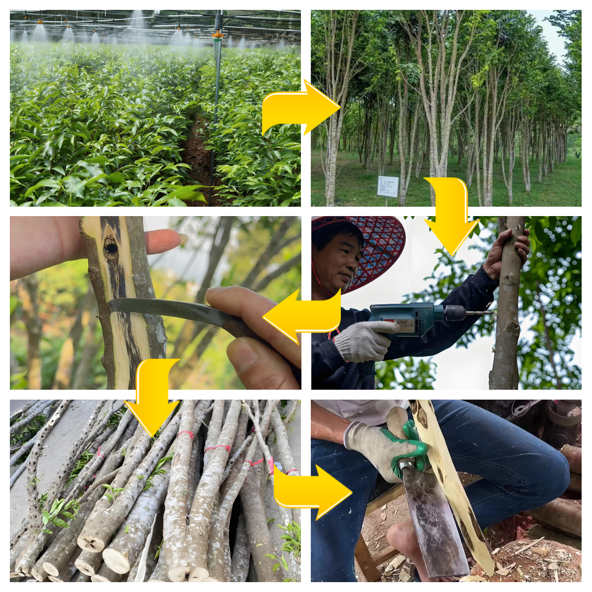 بعد ذلك، تُستخدم تقنيات خاصة. تُحفر ثقوب في جذع الشجرة باستخدام مثقاب كهربائي، مما يُحدث ضررًا ماديًا لتحفيز الشجرة على إفراز راتنج العود. هذه هي الخطوة الأساسية في تكوين خشب العود الأصلي. بعد إفراز الراتنج، تستمر الأشجار في النمو طبيعيًا لمدة سنتين ونصف لضمان استقرار الراتنج ونضجه بالكامل.